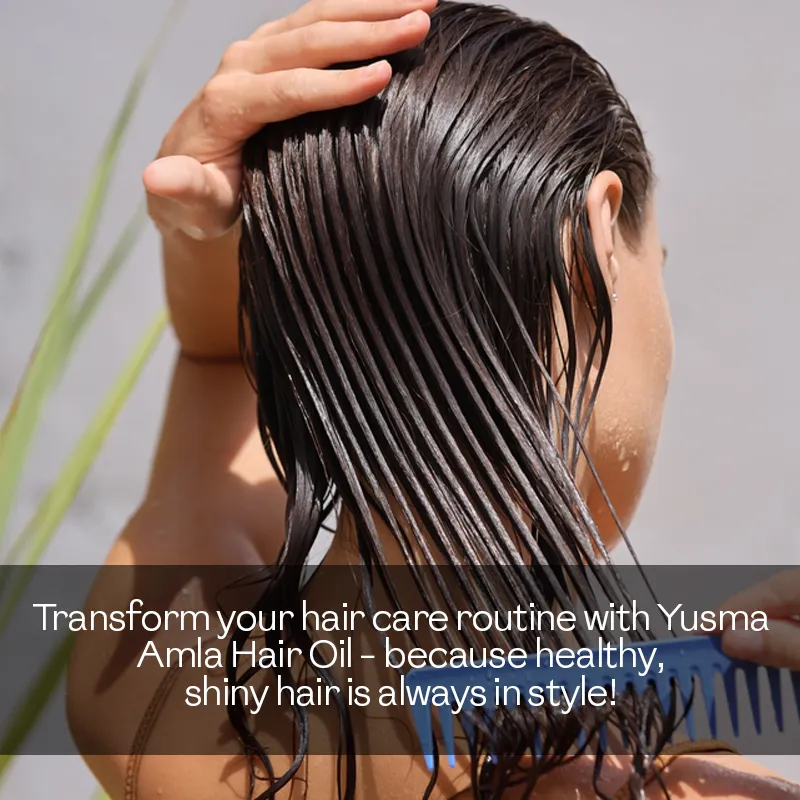 Yusma Amla Hair Oil strengthens, smooths, and hydrates hair. Prevents damage, split ends, and dandruff. Use regularly for shiny, healthy hair.