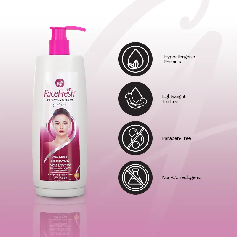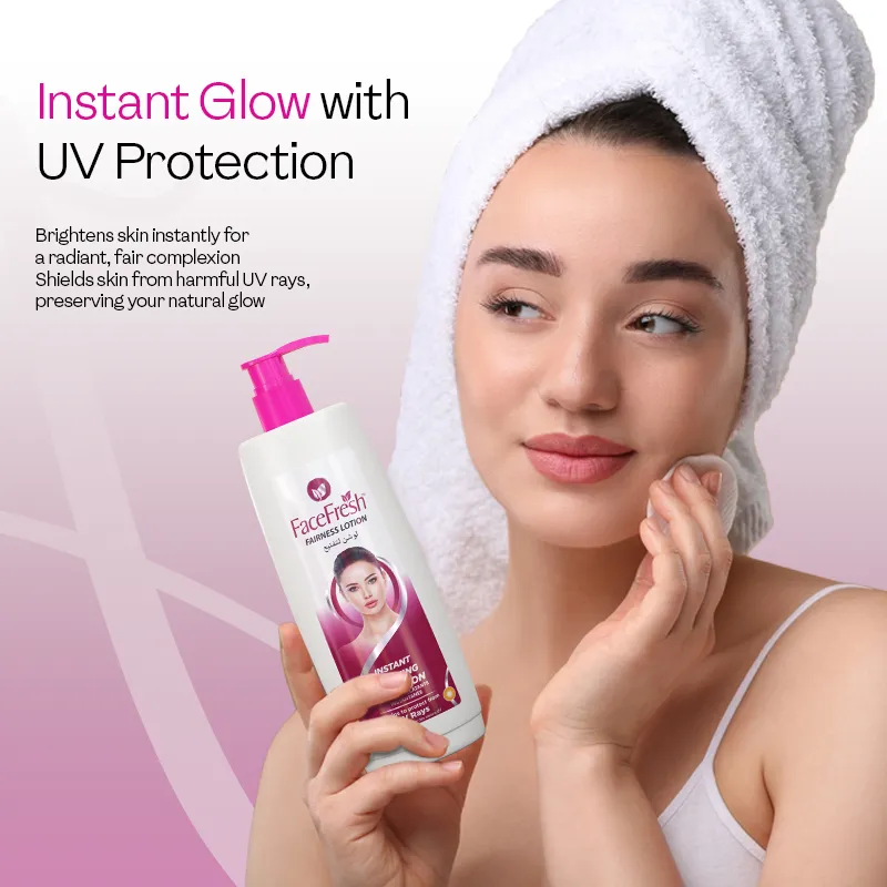 Face Fresh Fairness Lotion whitens, hydrates, and protects skin. Non-greasy and gentle for daily use. Leaves skin soft, smooth, and visibly radiant.